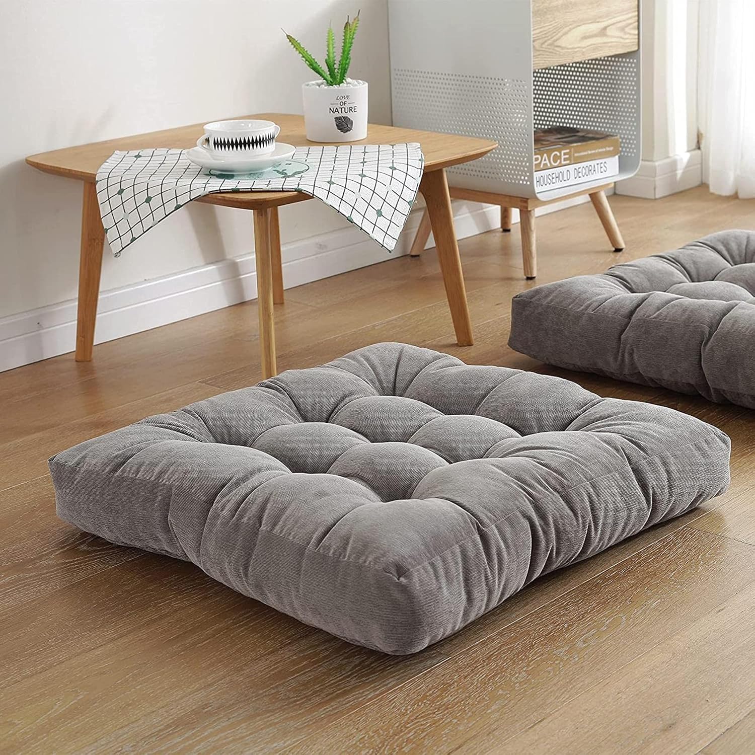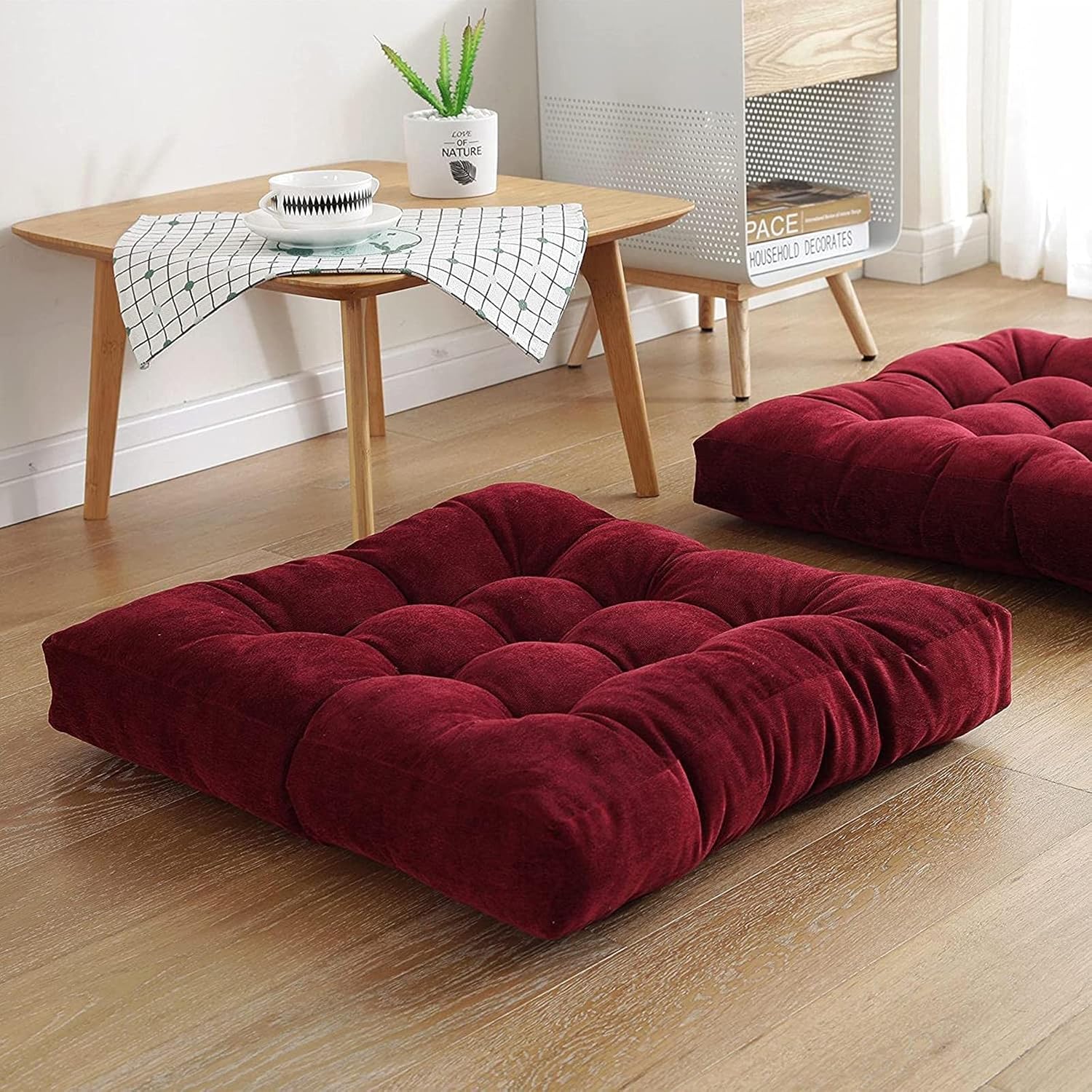 Floor Pillow, Set of 2, Square Meditation Pillow for Seating on Floor Solid Thick Tufted Seat Cushion Meditation Cushion for Yoga Living Room Sofa Balcony Outdoor, 22x22 Inches